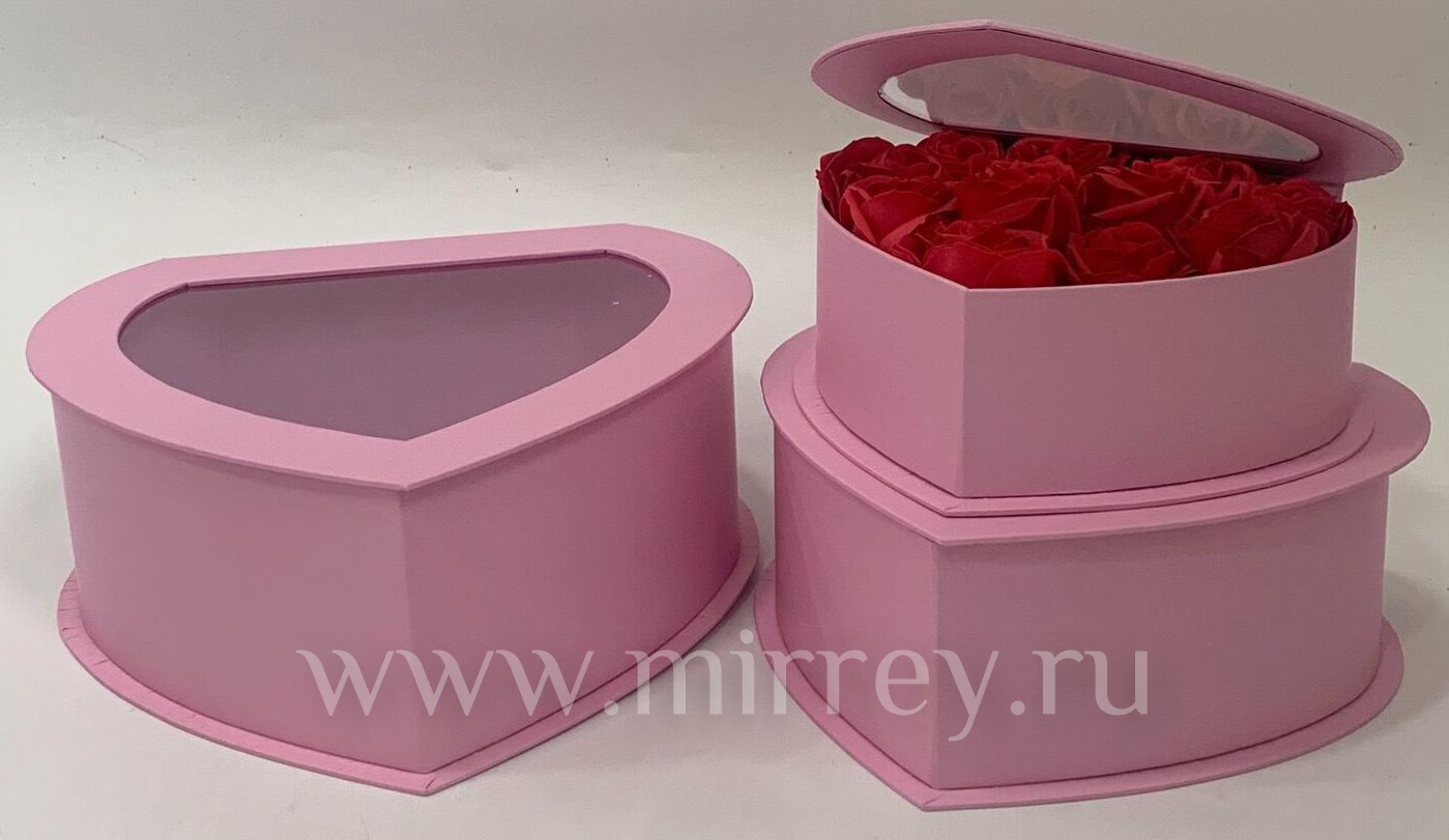 Набор коробок с прозрачной крышкой 25,2x24,2x10 см, 22,5x20,5x8,8 см,19,5x17x7 см, 3 шт., розовый