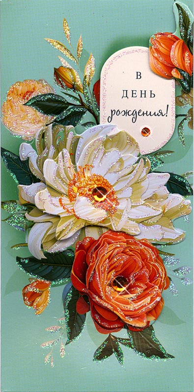 Открытка-конверт "В День Рождения!", размер: 9,3х19 см, в упак. 1 шт.
