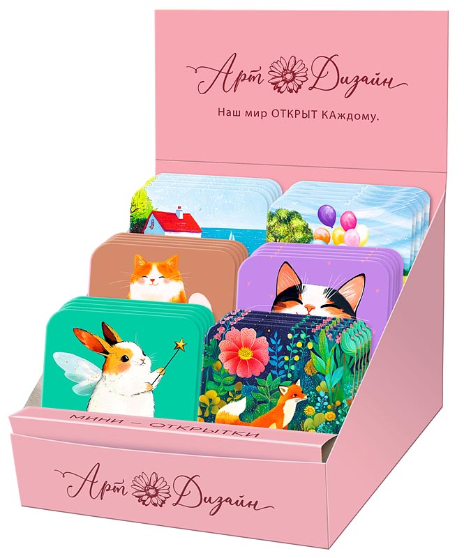 Набор открыток мини № 281, размер открытки 7х7 см. в наборе 120 шт.