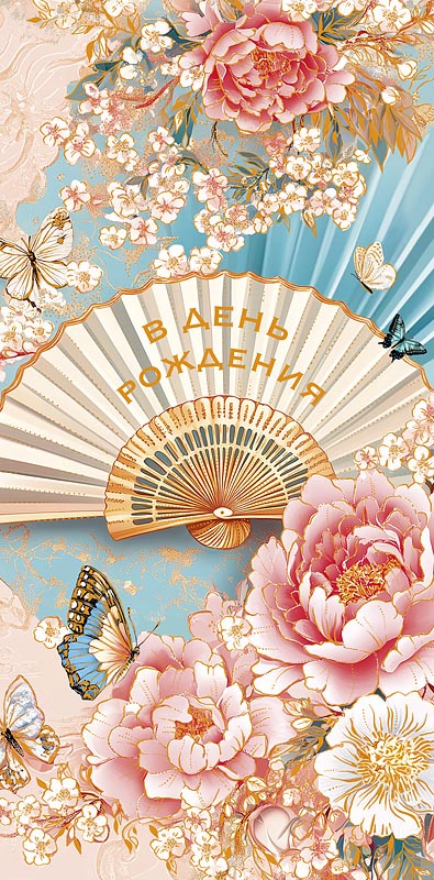 Открытка-конверт "В День Рождения!", размер: 8,3х16,7 см, в упак. 10 шт.