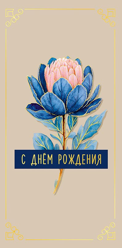 Открытка-конверт "С Днем Рождения!", размер: 8,3х16,7 см, в упак. 10 шт.
