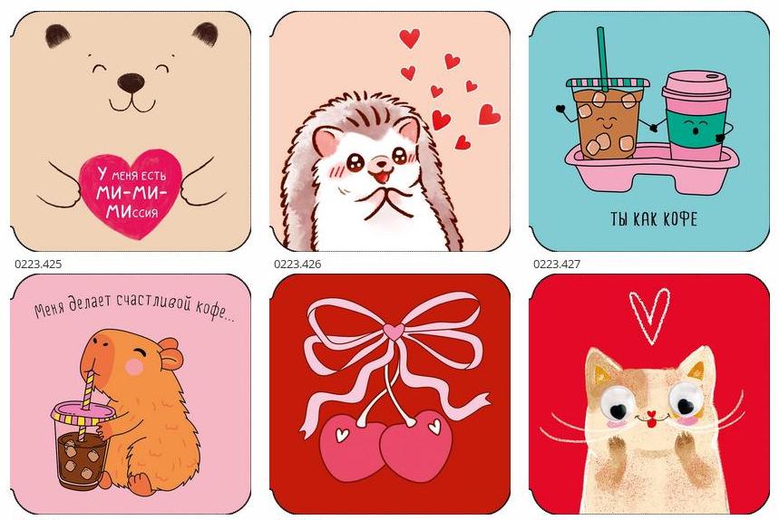 Набор открыток мини №285, размер открытки 7х7 см. в наборе 120 шт.