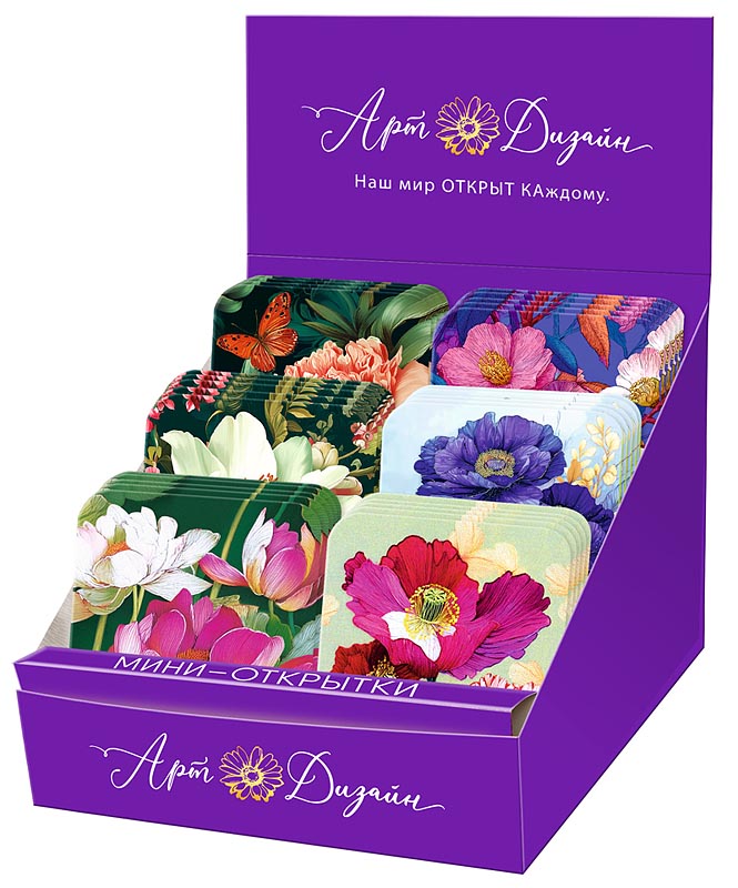 Набор открыток мини № 292, размер открытки 7х7 см. в наборе 120 шт.