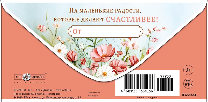 Открытка-конверт "С Днем Рождения!", размер: 8,3х16,7 см, в упак. 10 шт.
