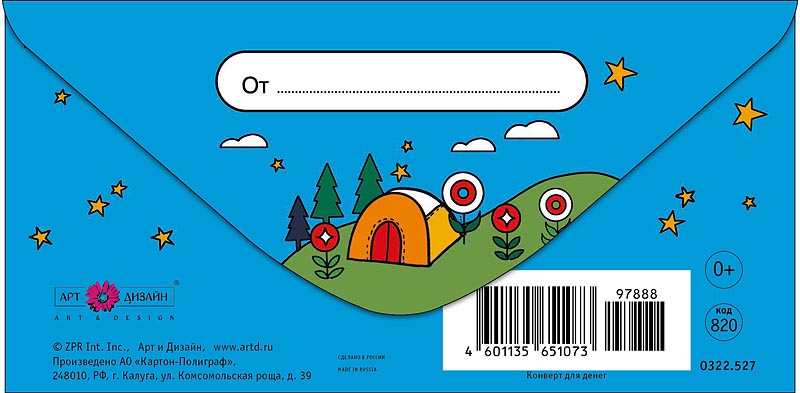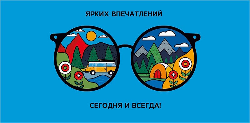 Открытка-конверт "Ярких впечатлений!", размер: 8,3х16,7 см, в упак. 10 шт.