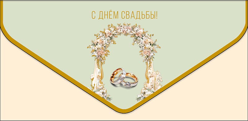 Открытка-конверт "С Днем Свадьбы!", размер: 9,3х19 см, в упак. 1 шт.