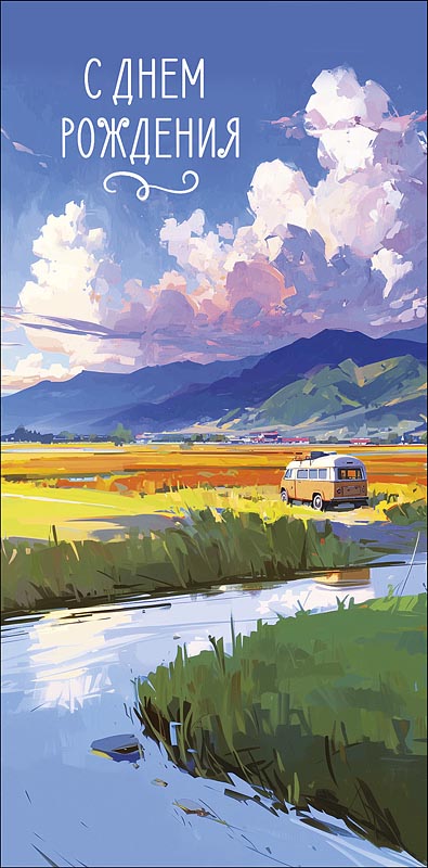 Открытка-конверт "С Днем Рождения!", размер: 8,3х16,7 см, в упак. 10 шт.