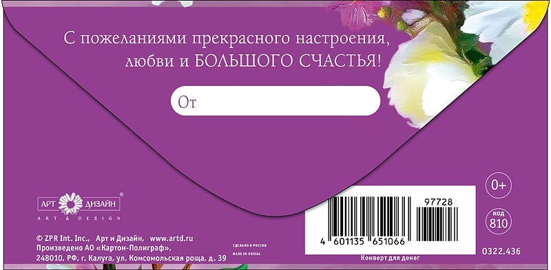 Открытка-конверт "Поздравляем!", размер: 8,3х16,7 см, в упак. 10 шт.