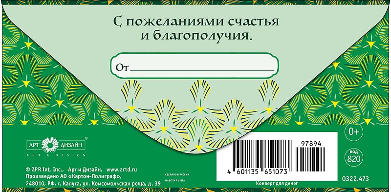 Открытка-конверт "Поздравляю!", размер: 8,3х16,7 см, в упак. 10 шт.