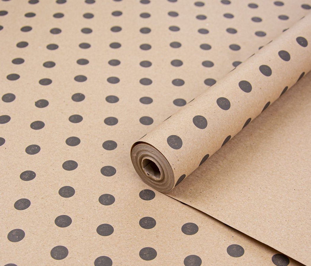 А Бумага крафт с рисунком "Горох" Черный 70см 400гр