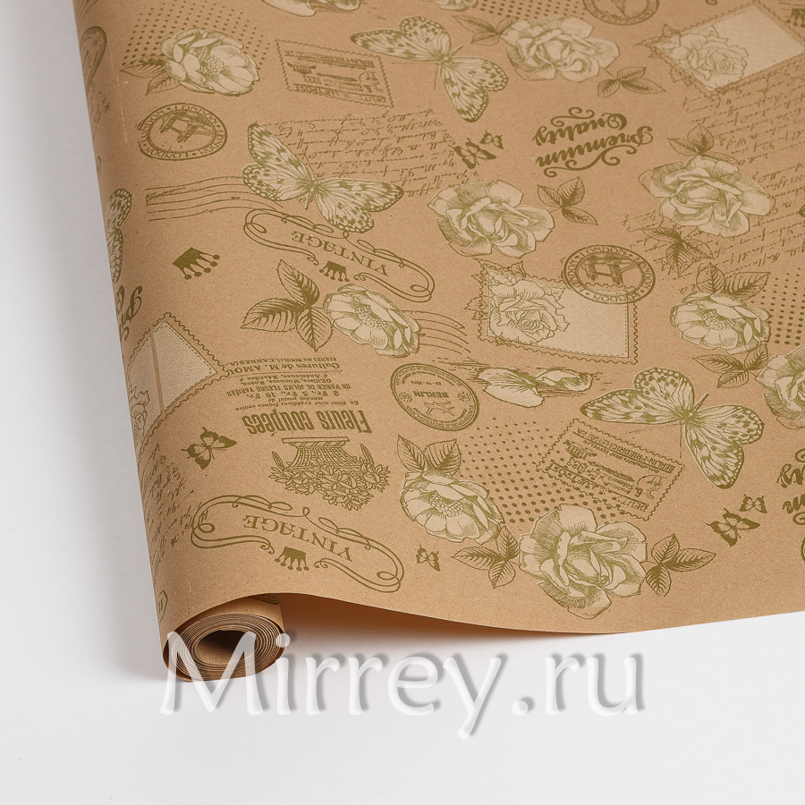 Флористическая крафт бумага "Премиум", 70 см x 10 ярд, бурый / фисташковый-крем