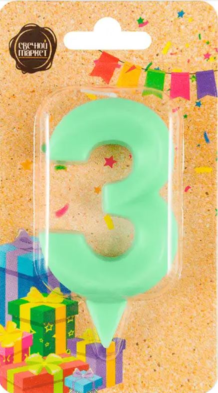 Свеча цифра 3 «Грань» зеленая пастель