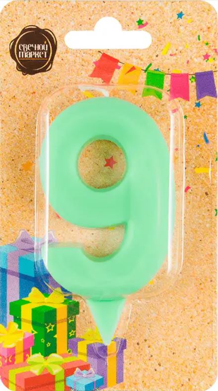 Свеча цифра 9 «Грань» зеленая пастель