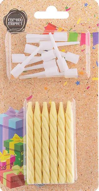 Набор тортовых свечей СПИРАЛИ 12 шт. желтый пастель