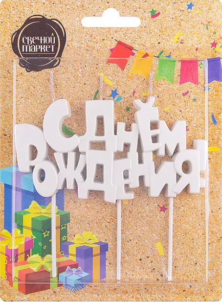 Свеча надпись "С днем рождения", жемчужный перламутр