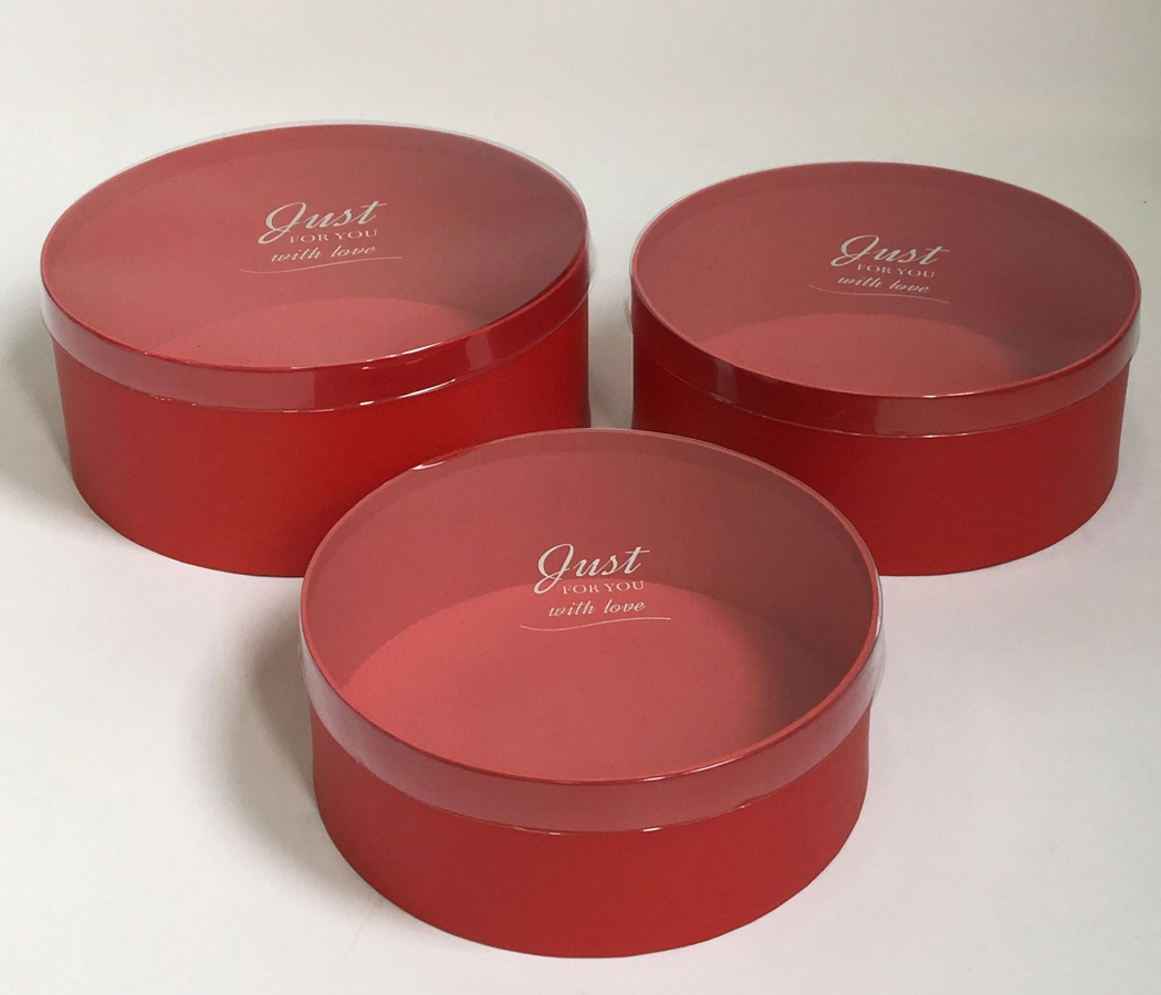 Набор коробок, круглые с прозрачной крышкой, 3 шт., 26,5x11,2 см / 24х9,7 см / 22,5x8,3 см, красный