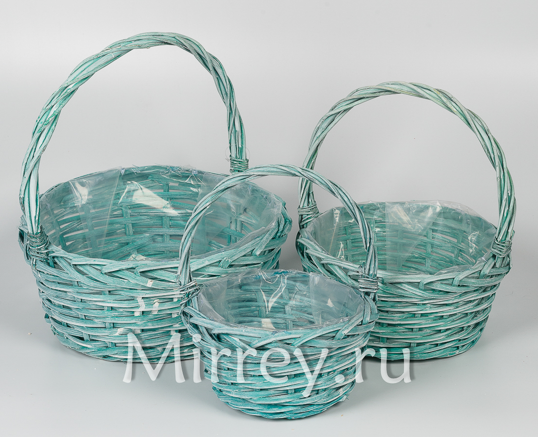 Набор плетеных корзин (ива), D33x14/35 см, D27x11,5/30 см, D22x12/30 см, 3 шт., светло-зеленый