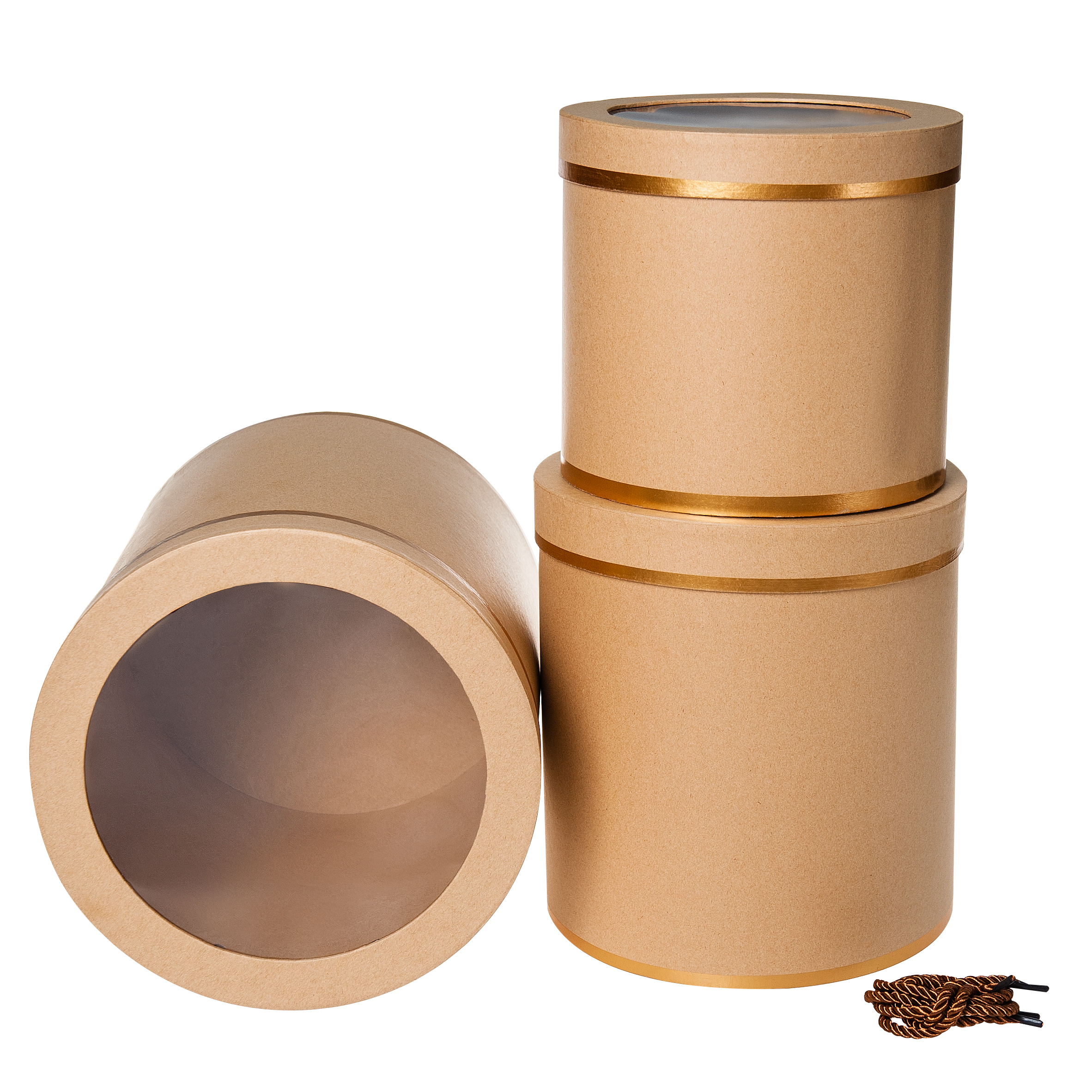 Набор коробок "Цилиндры с прозр. крышкой", 24х24 см, 22х22 см, 20х18 см, 3 шт., бежевый