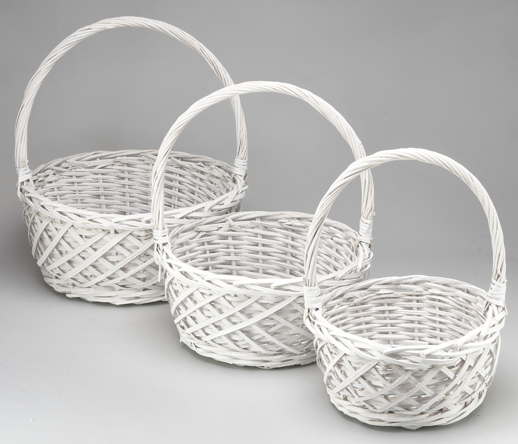 Набор корзин плетеных (ива): D45xH20xHH50 BD36, D37xH17xHH44 BD31, D29xH15xHH38 BD25, 3 шт. белый