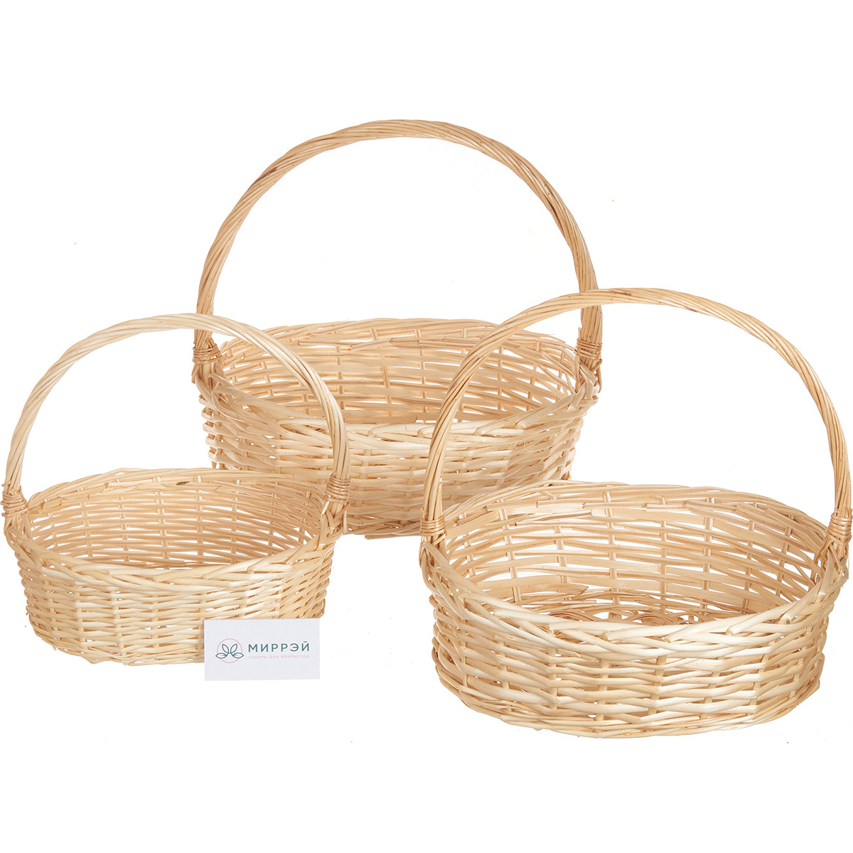 Набор корзин плетеных (ива) 46*39*H14 TH44, 41*34*H12 TH39, 34*27*H11 TH34, 3 шт., натуральный