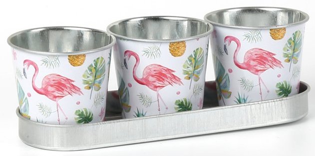 Набор декоративных кашпо "Фламинго" кашпо 6,5XH6 B5CM, поднос:19x6,5xH1,5СМ, 3 шт., металл