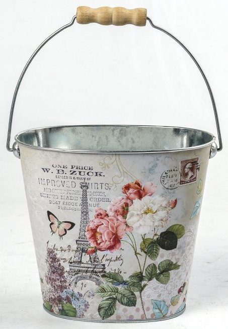 Декоративное овальное кашпо-ведерко "Однажды в Париже" 18X11.5XH15.5/26.5 см. металл