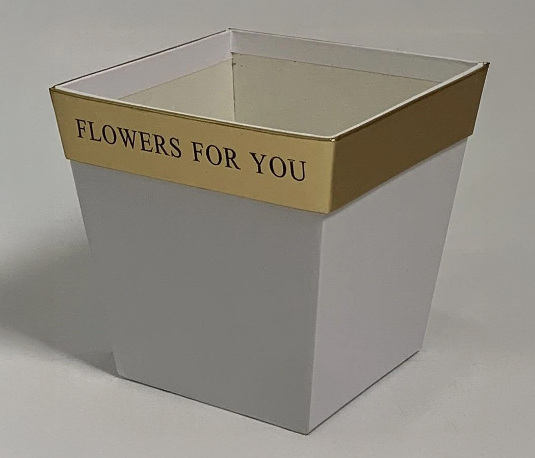 Коробка под цветы с золотой полосой "Для тебя" 11,5x8x10,8 см. 1 шт., белый