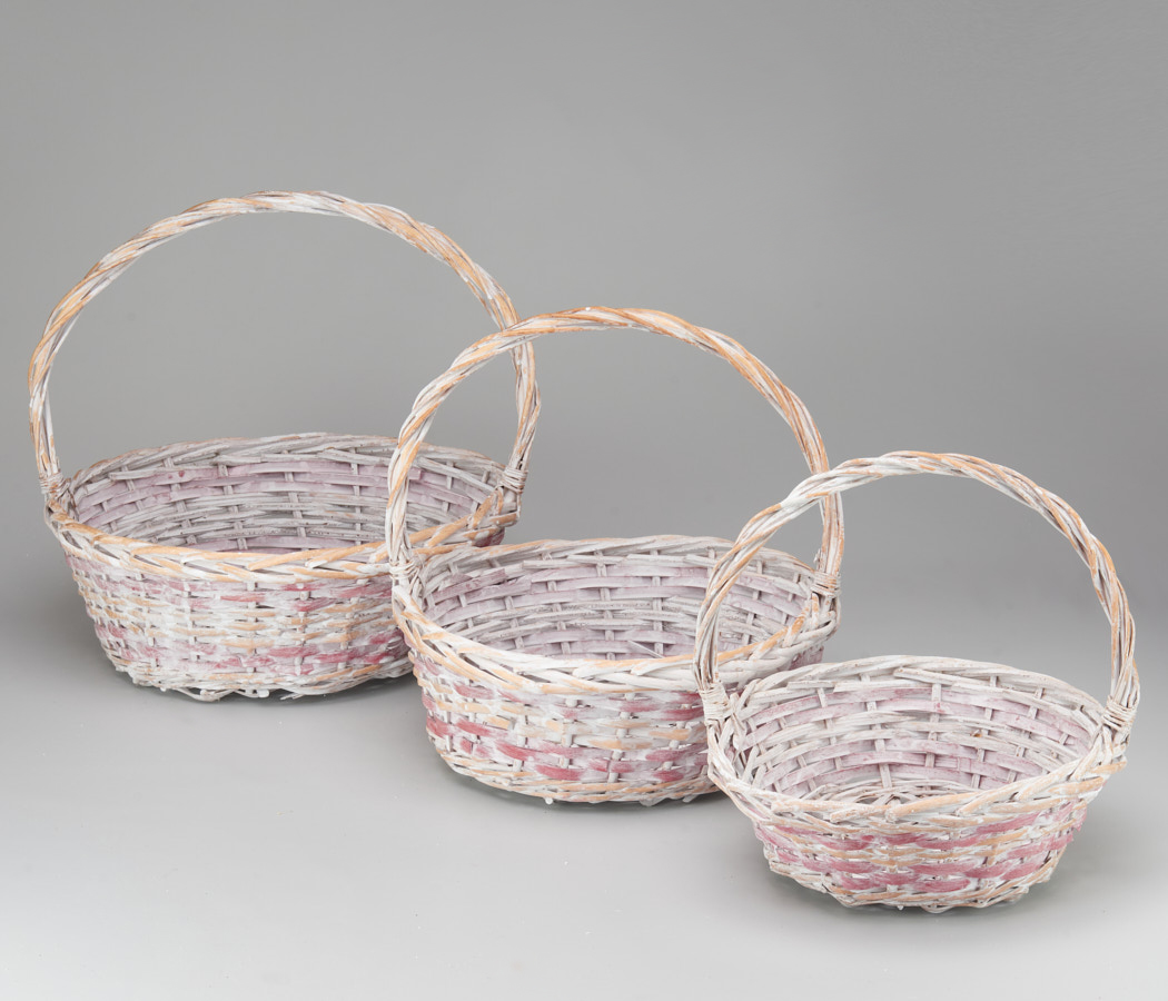 Набор корзин плетеных (ива): L:40*40*15/38, M:35*35*13/33, S:30*30*11/28 см., 3 шт., св.сиреневый