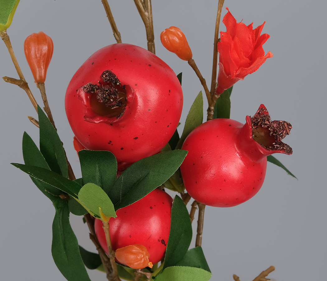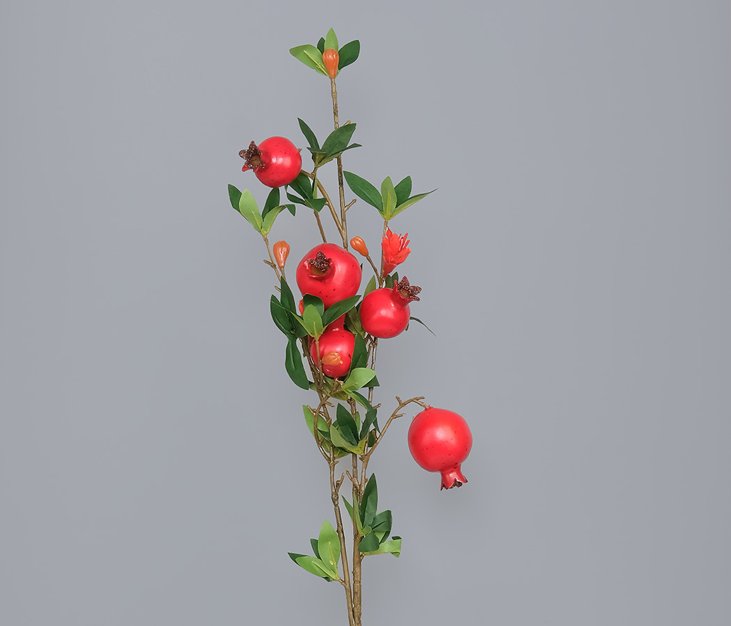 Ветка декоративная с гранатами (плоды D5 см - 2 шт., плоды D4 см - 3 шт.), 80 см, 1 шт.