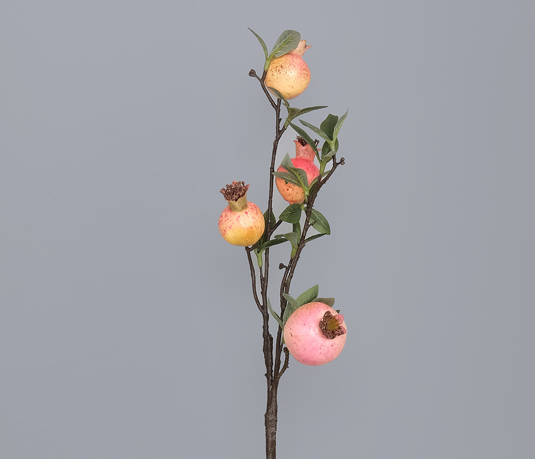 Ветка декоративная с гранатами (плоды D5 см - 1 шт., плоды D4 см - 3 шт.), 52 см, 1 шт.