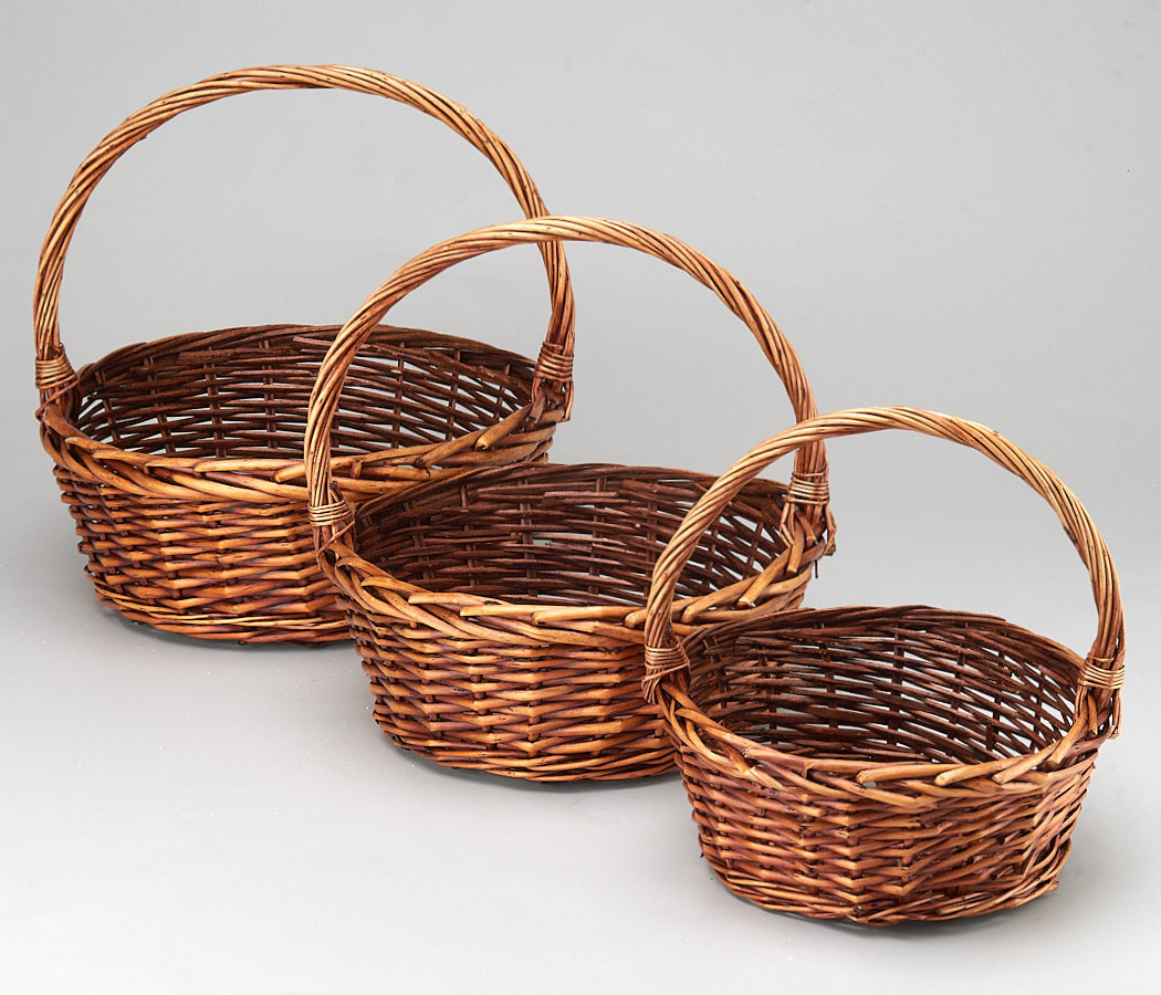Набор корзин плетеных (ива), 36*36*15*38 см, 29*29*13*33 см, 23*23*11*28 см, 3 шт., коричневый