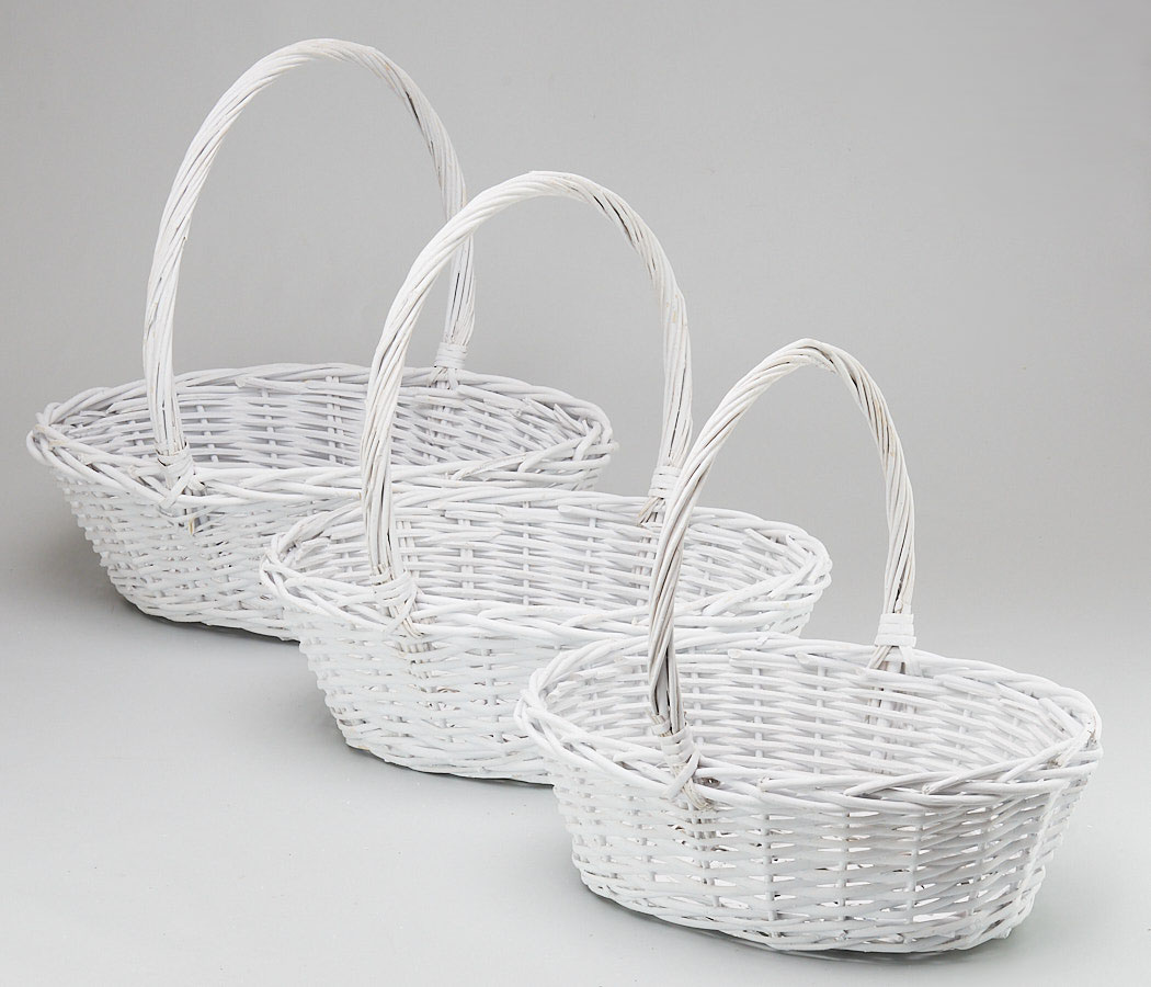 Набор корзин плетеных (ива): 52x40xH17xHH44, 43x33xH15xHH39, 38x27xH13xHH34 см. 3 шт., выбеленный