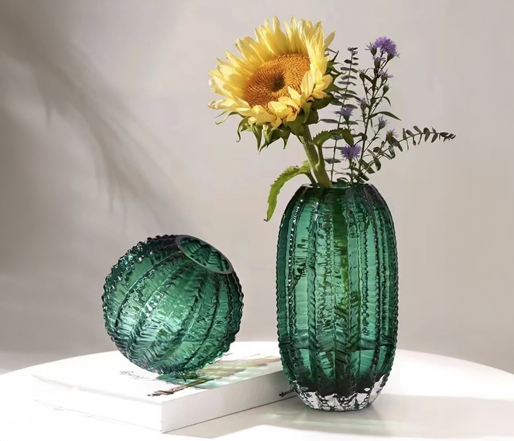 Ваза стеклянная D18 * H15 см, 1 шт., зеленый
