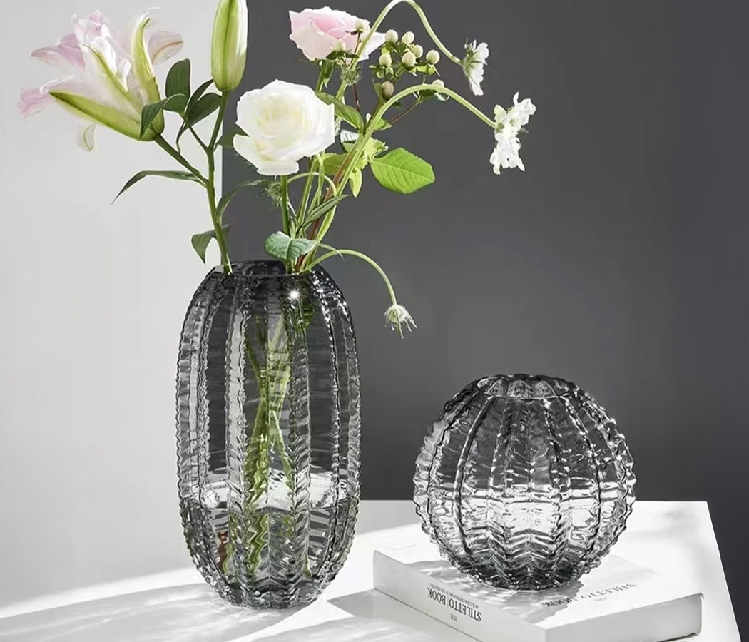 Ваза стеклянная D18 * H15 см, 1 шт., серый