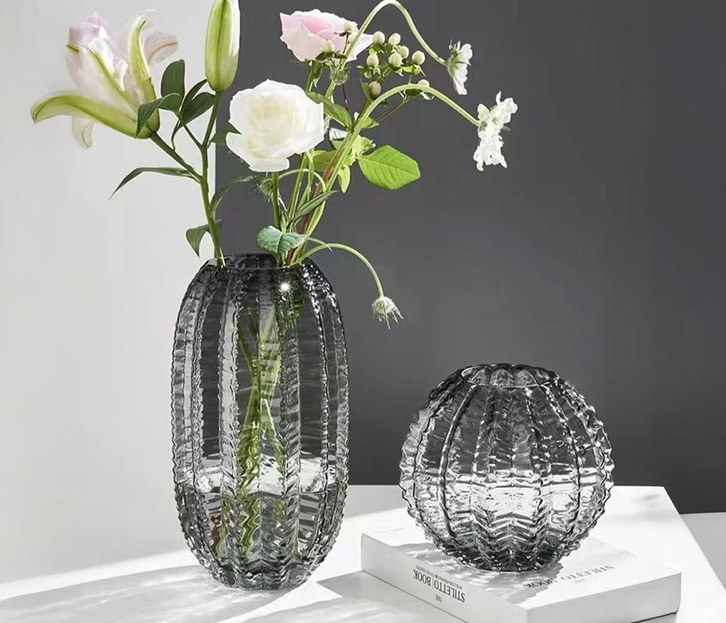 Ваза стеклянная D16 * H28 см, 1 шт., серый