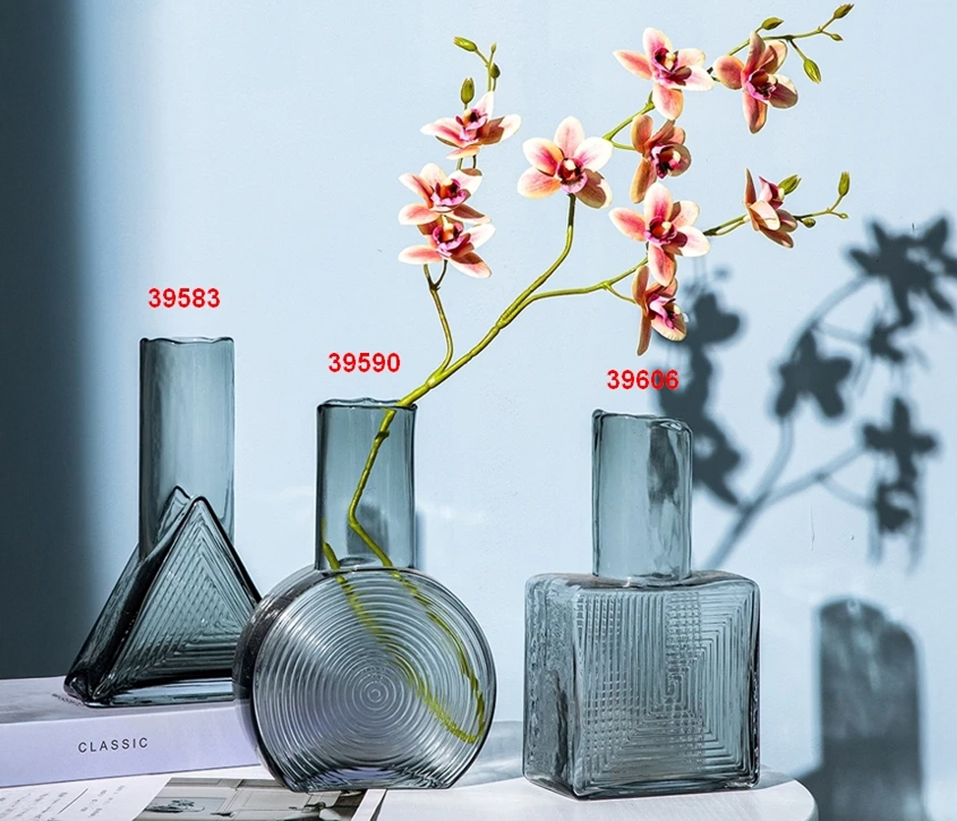 Ваза стеклянная D16 * H23 см, 1 шт., зеленовато-серый