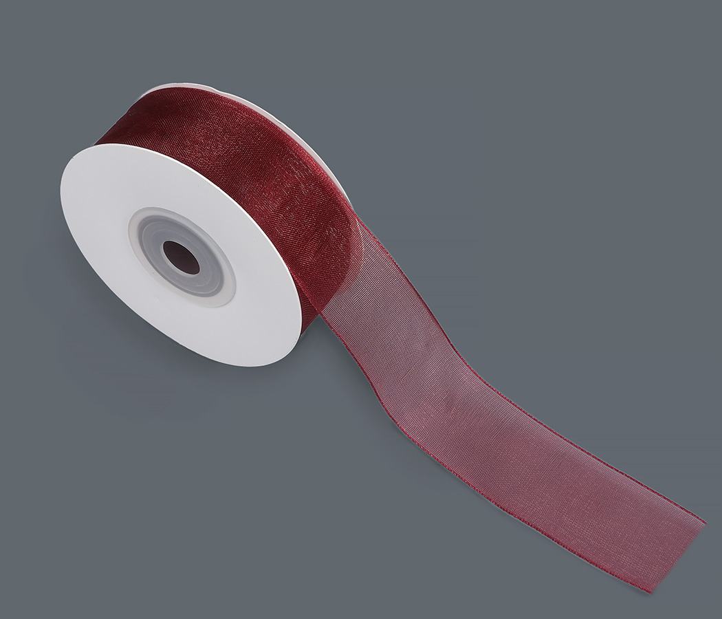 Лента органза на картонн.катушке, 25мм*25ярд, бордовый (5 шт/упак)