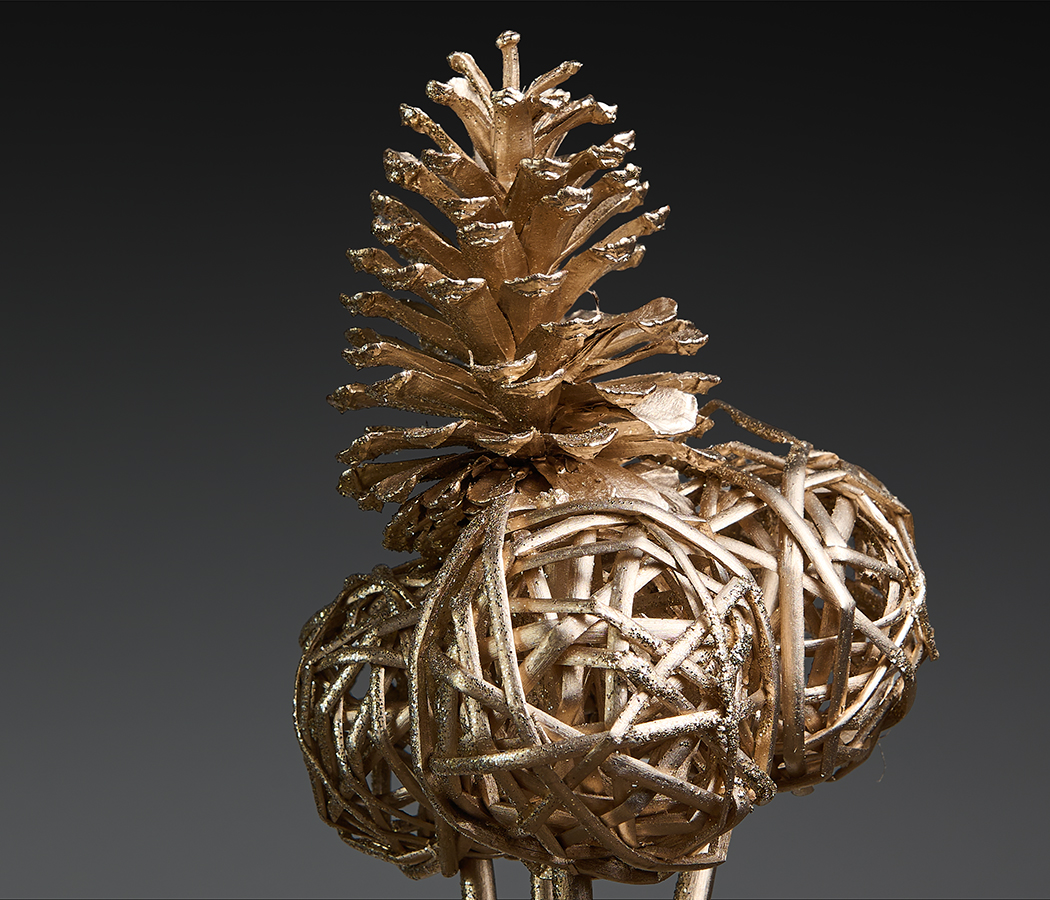 Сосновая шишка(10-12 см) и 3 шт ивовых шариков(8 см) на ивовых палочках, в глиттере цвета шамп,65 см