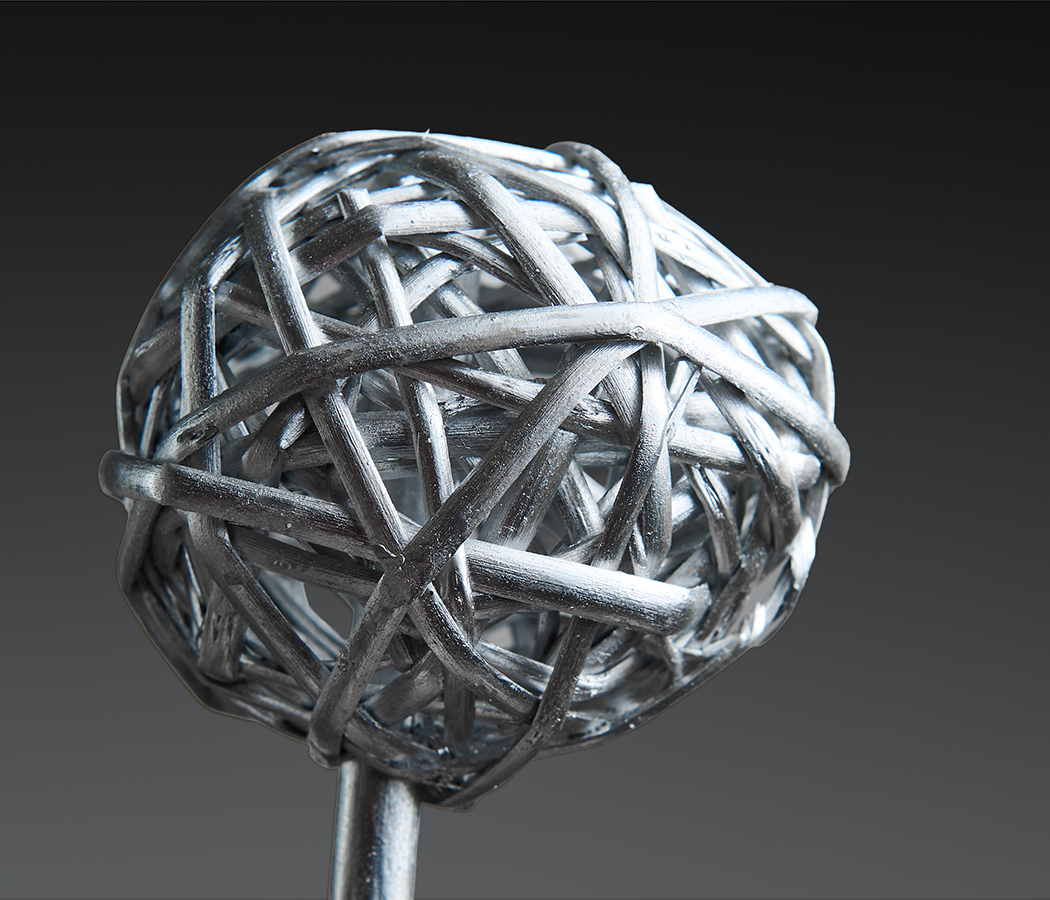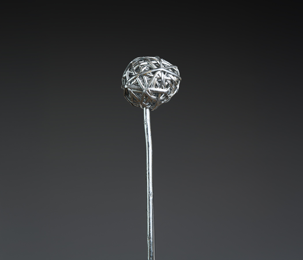 Декоративный ивовый шарик 7 см, на бамбуковой вставке, 56 см, в глиттере цвета серебро