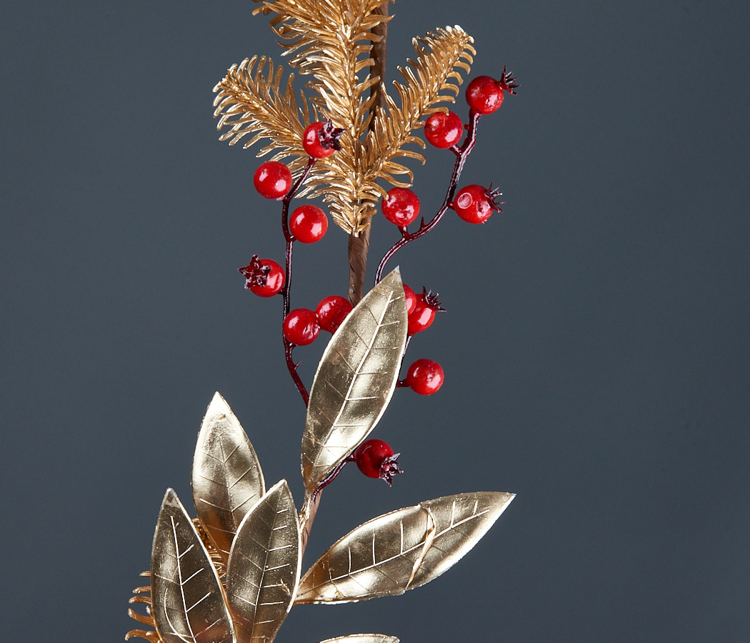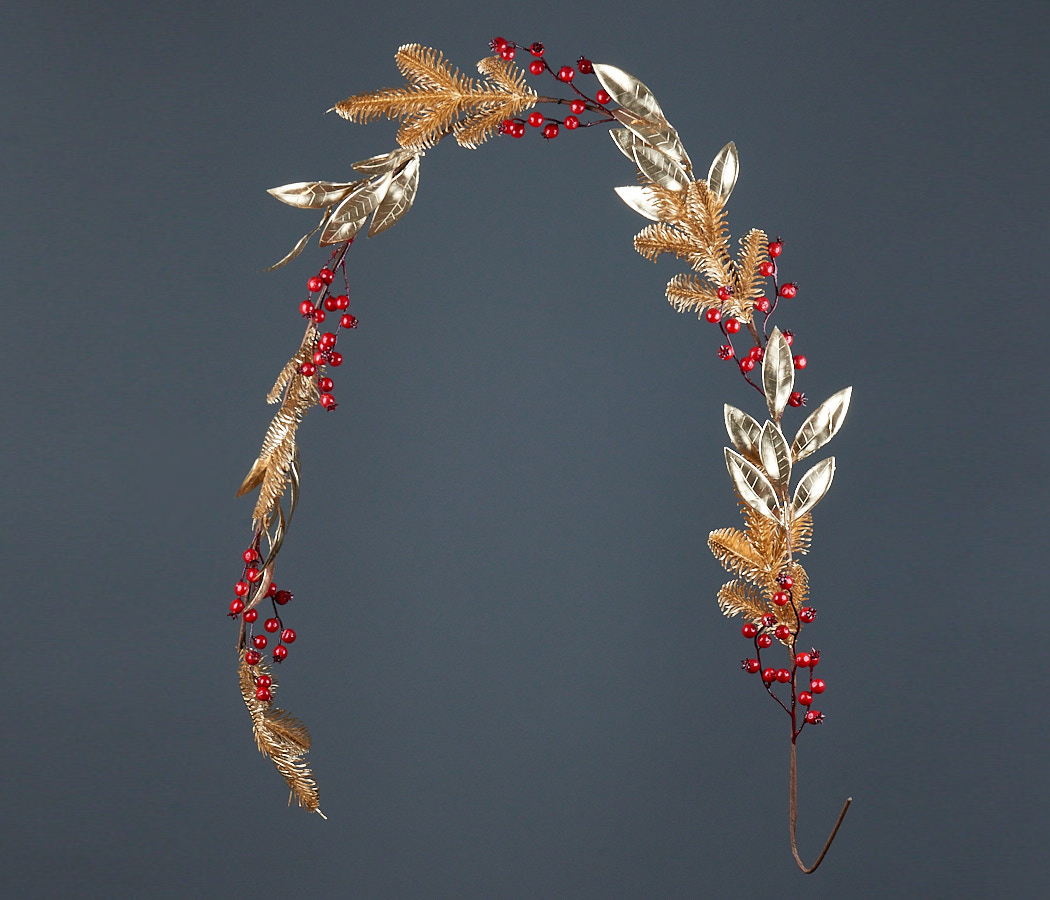 Гирлянда золотистая с красным ягодами и золотыми листьями, 145 см