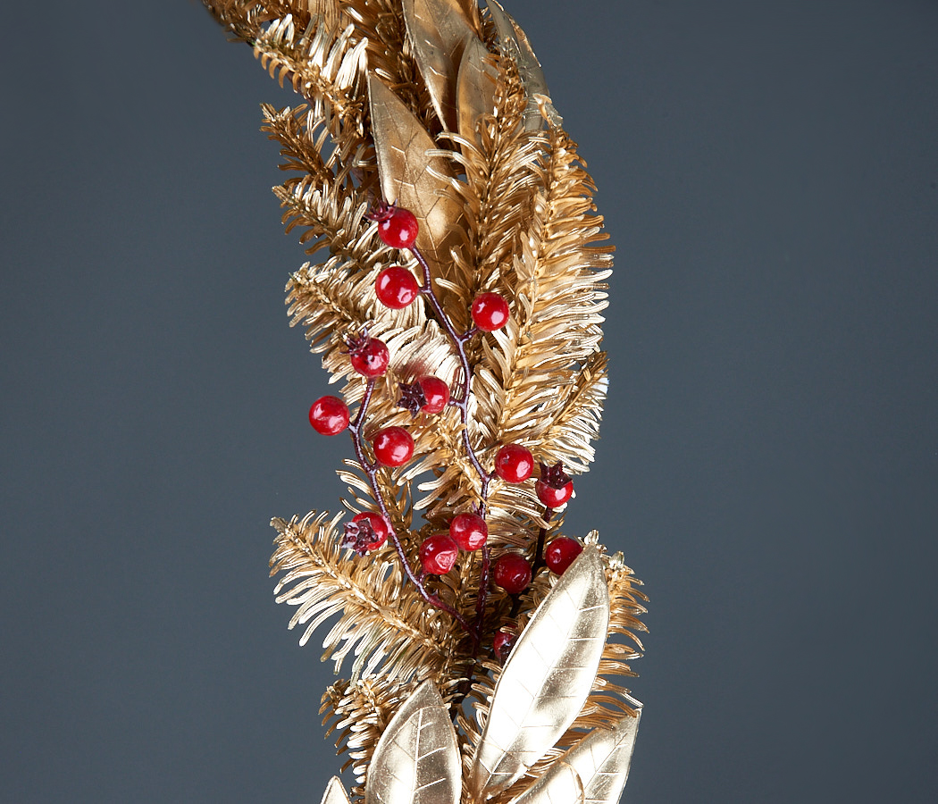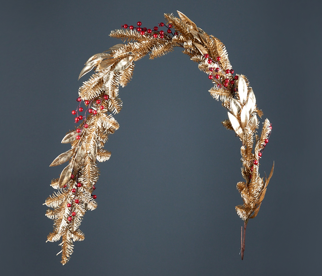 Гирлянда золотистая с красным ягодами и золотыми листьями, 140 см