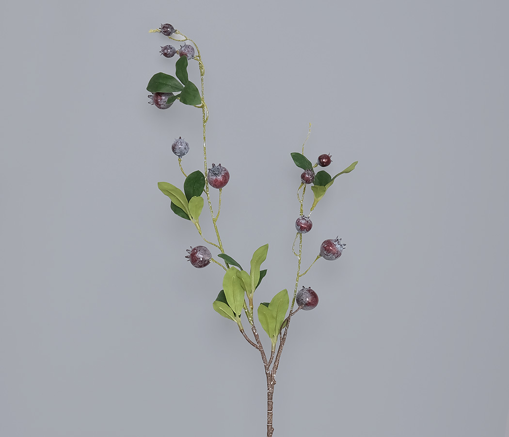 Ветка декоративная с синими ягодками и листиками, 85 см, 1 шт.
