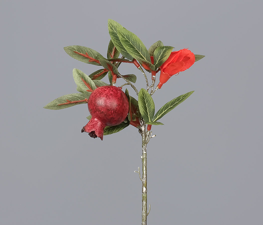 Ветка декоративная с гранатом и соцветием, 20 см, 1 шт.
