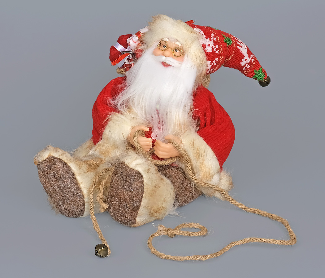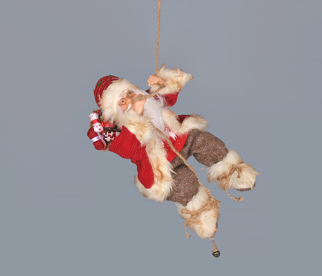 Новогодний сувенир Санта-Клаус, карабкающийся на веревке 30 см, красный/серый, 1 шт.