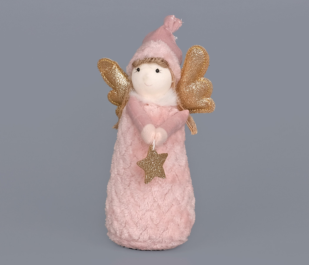 Фигура новогодняя декоративняя "Мишка в свитере и жакете" 15*10*20 см, 1 шт., розовый/золото
