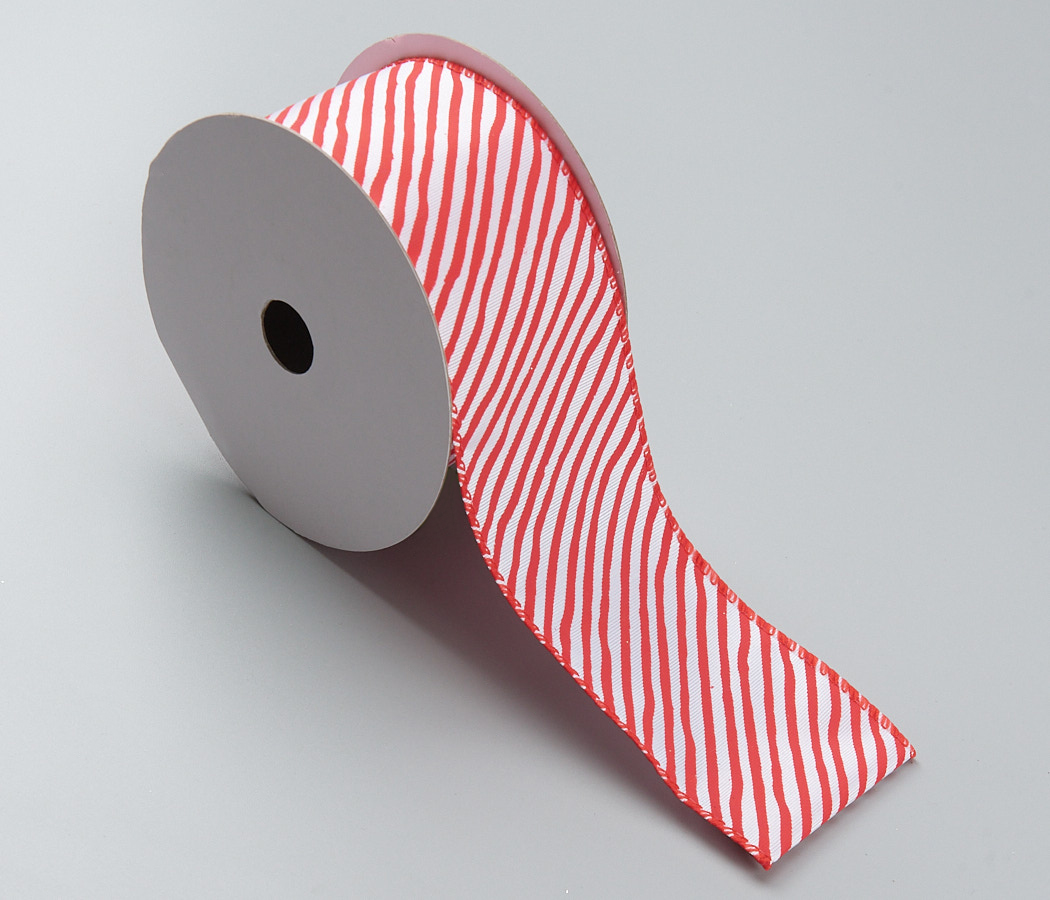 Лента новогодняя декоративная Полосы 6,3*10 ярд, 1 шт., красный/белый