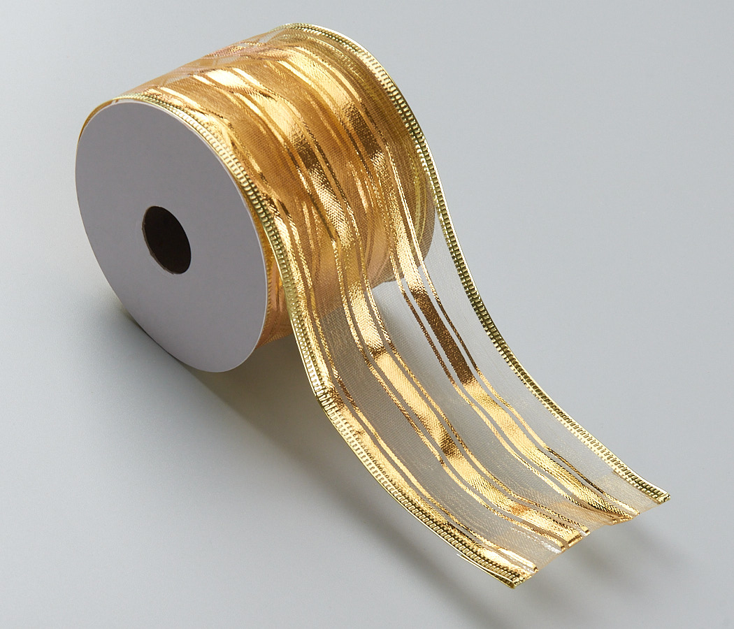 Лента новогодняя декоративная 6,3*10 ярд, 1 шт.,золото