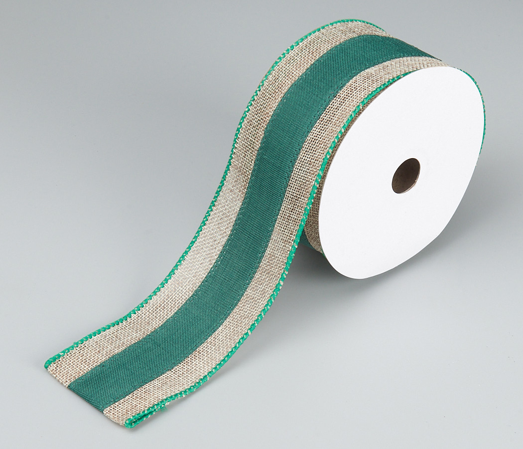 Лента новогодняя декоративная 6,3*10 ярд, 1 шт., натуральный/зеленый