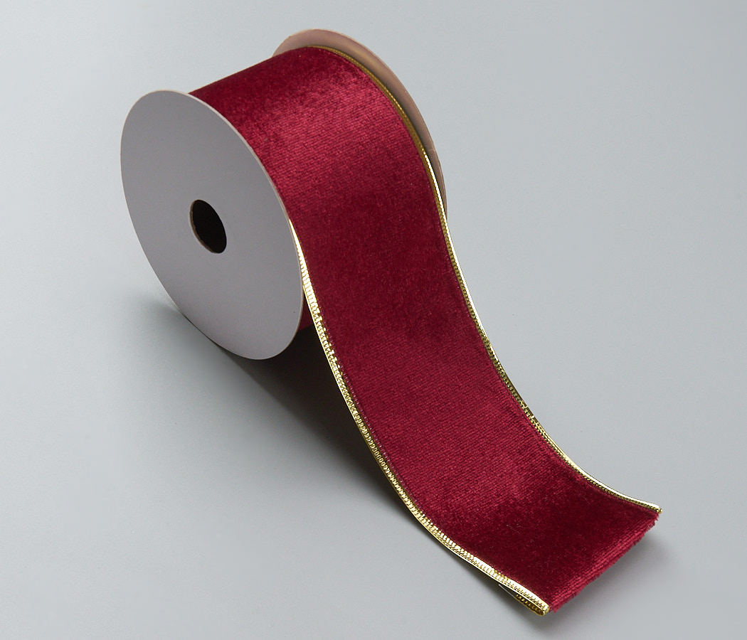 Лента новогодняя декоративная 6,3*10 ярд, 1 шт., насыщ.красный/золотой