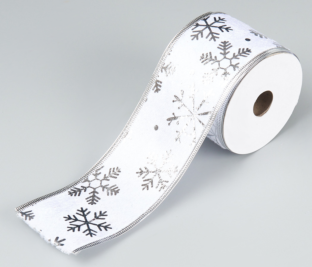 Лента новогодняя декоративная Снежинки 6,3*10 ярд, 1 шт., белый/серебро